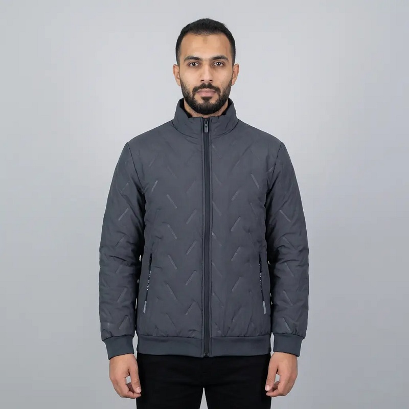 جاكيت رجالي رمادي داكن بياقة وجيوب بسحاب، ملابس شتوية دافئة - هانا أباريل |