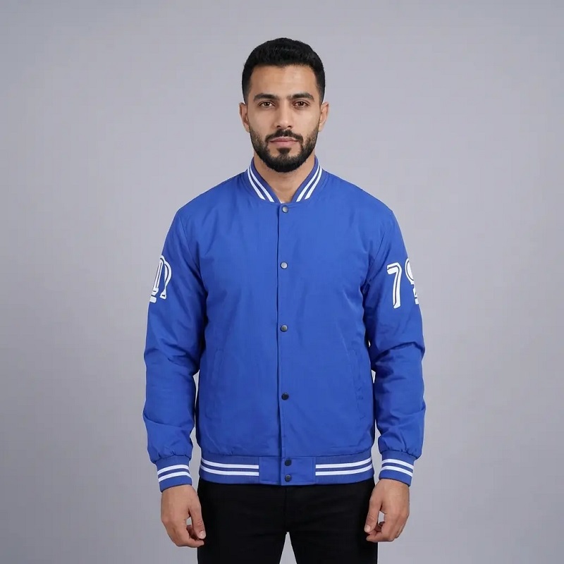| Colorblock striped collar/cuffs/hem design Puffa Jacket, layered look, exquisite embroidered letter details, stylish look. High-quality snap button for easy wear Sports Trousers, wrinkle-resistant fabric, perfect for spring/autumn single wear or layering. High-saturation royal blue eye-catching Hospitality Uniform, loose cut flatters figure, a must-have for men's trendy outfits. Elastic ribbed trim fits snugly College Uniform, windproof, solid embroidery craftsmanship, wash-resistant and durable. Vintage American varsity jacket silhouette Nursing Uniform, classic blue-white colorblock timeless, create street style easily. |