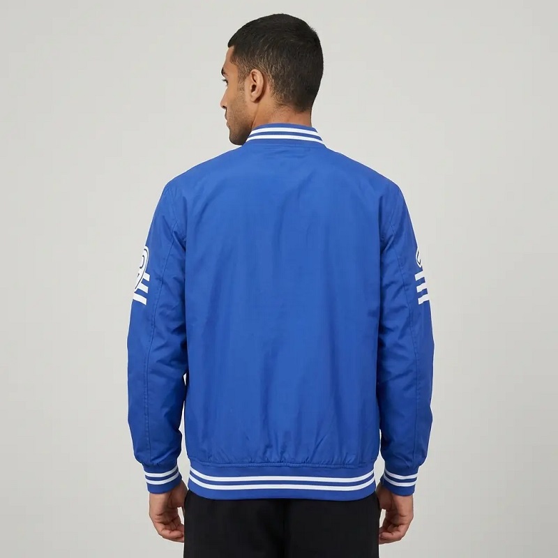 جاكيت بيسبول أمريكي كلاسيكي، بتصميم عصري، لون أزرق كلاين، ياقة مخططة، ملابس خارجية رجالية أنيقة - هانا أباريل |