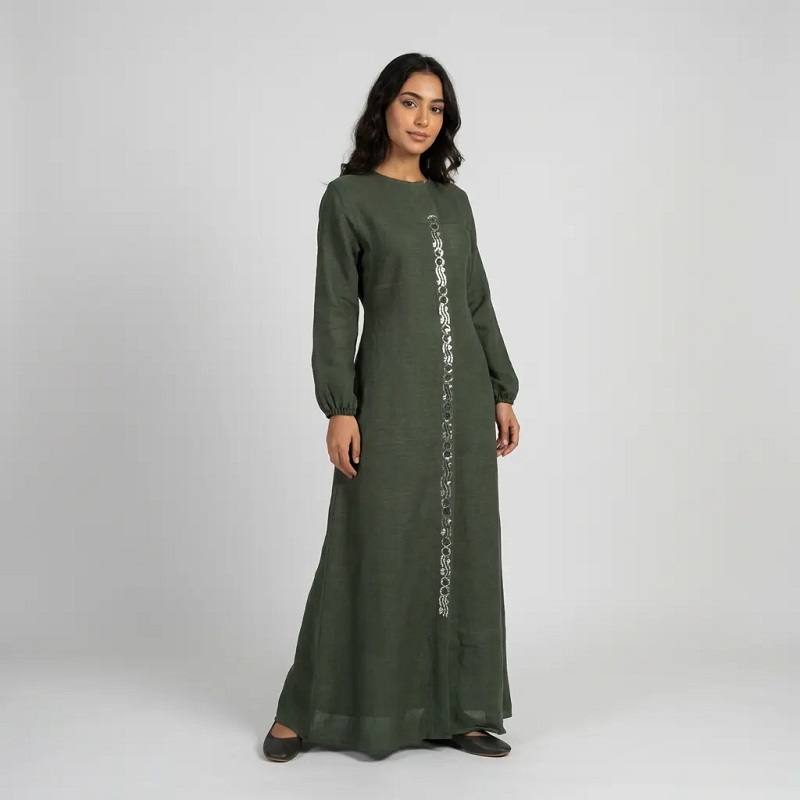 - Vertical cutwork/ring embroidery on the front placket boasts exquisite craftsmanship Modest Fashion, adding delicacy and luxury to the minimalist look.