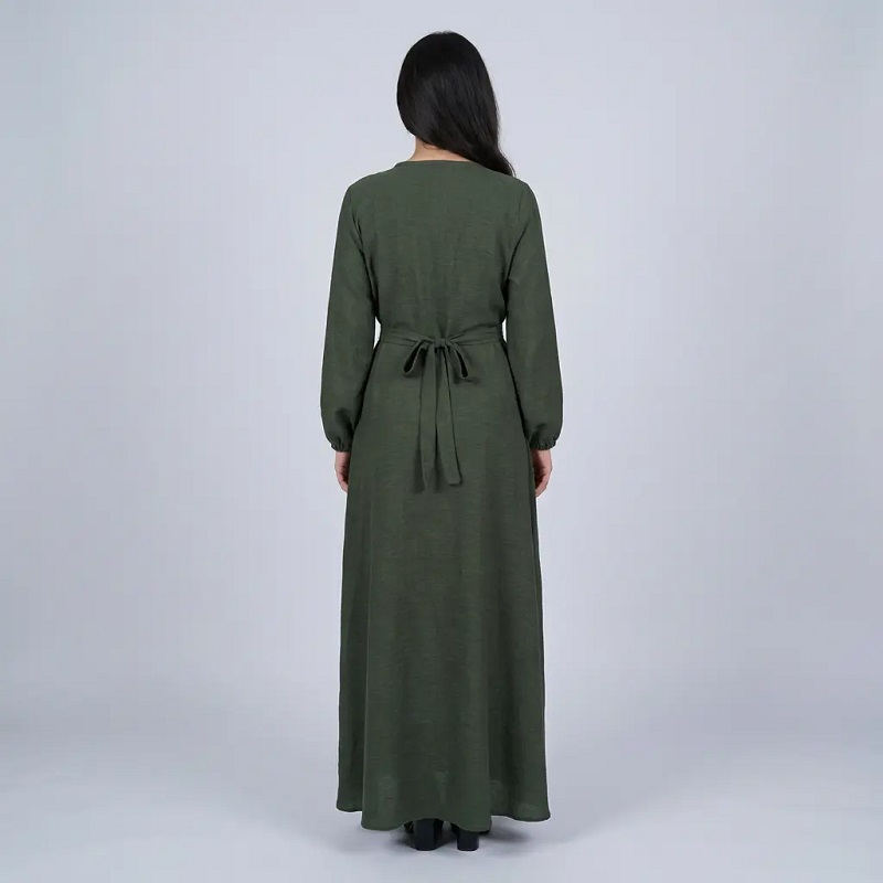 - Low-saturation olive green Arabian Clothing, soft and flattering on all skin tones, with a calm and natural vibe.