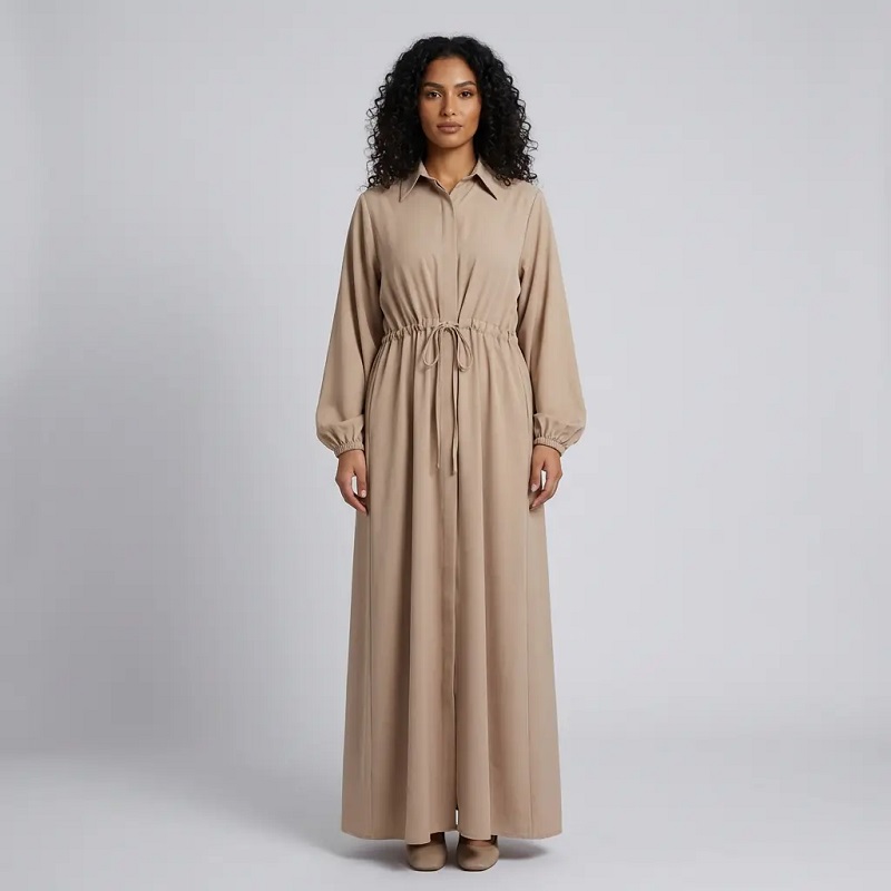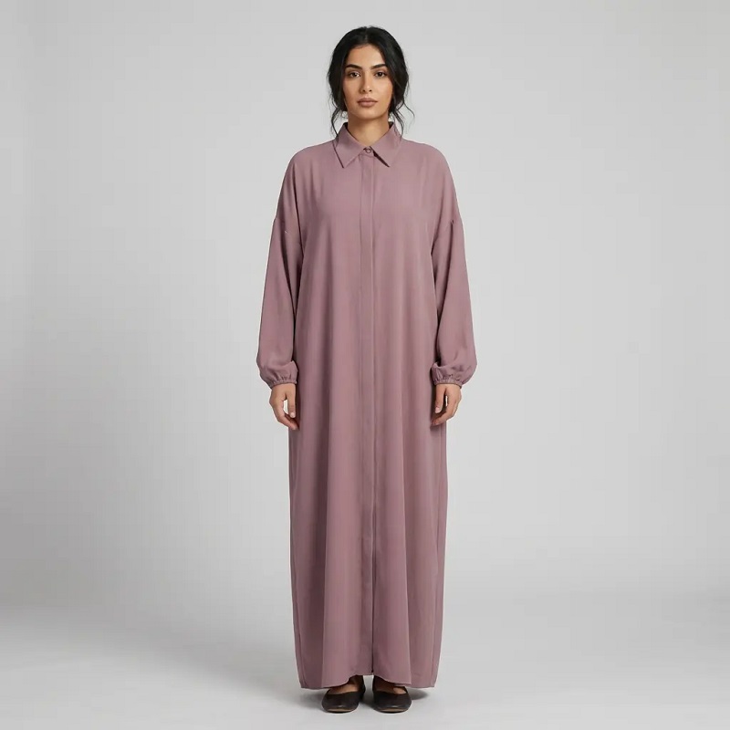 Muslim WearShirt dress in purple Abaya Premium Jersey Abaya Taupe Wide Sleeve Nida Open Abaya , Muslim Outfit - Hanna Clothes HC-5585