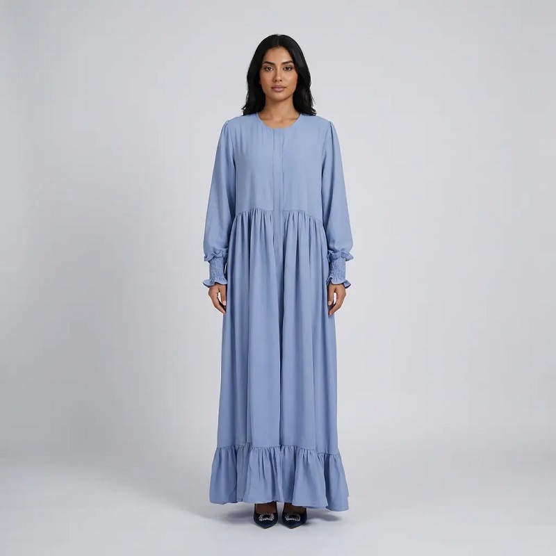 Muslim WearSolid Balloon Sleeve Tiered Maxi Dress For Muslim Women at Kuwait , Arabian Outfit - Hanna Clothes HC-5670