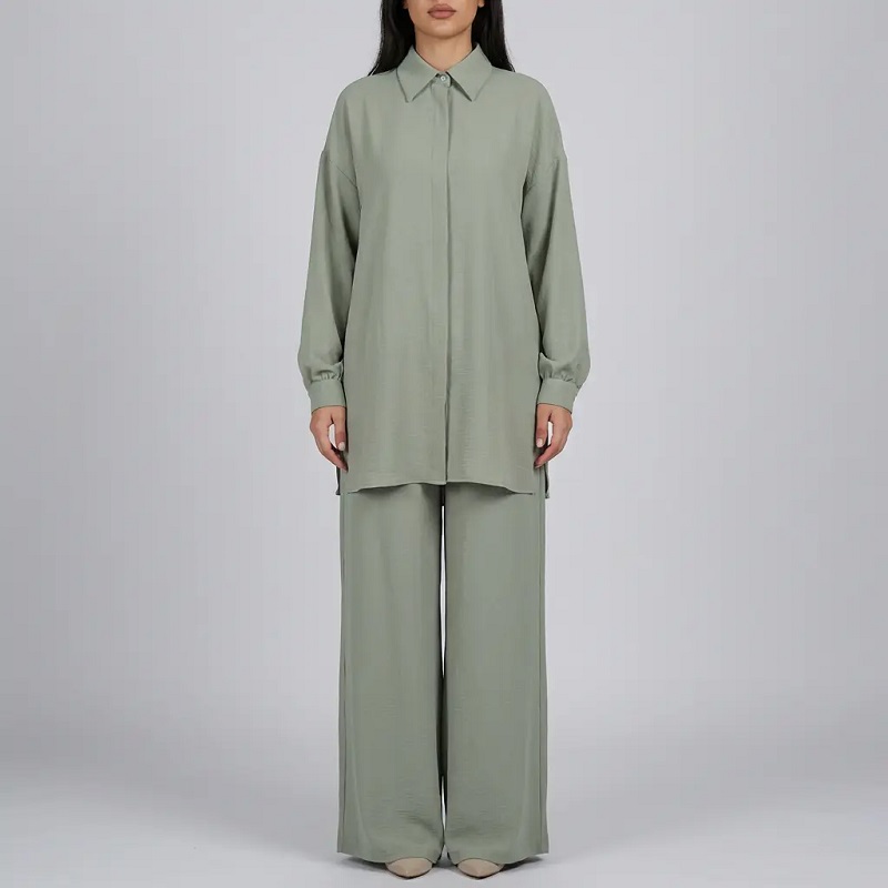 Muslim WearHijabi tunic and pants set Neutral Layered 3-piece Abaya Set For Women, Muslim Clothing - Hanna Clothes HC-5672