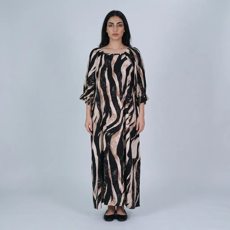 Muslim WearZebra Print Square Neck Puff Sleeve Maxi Abaya | Dubai Muslim Fashion Gown, Muslin Clothes - Hanna Clothes HC-7033