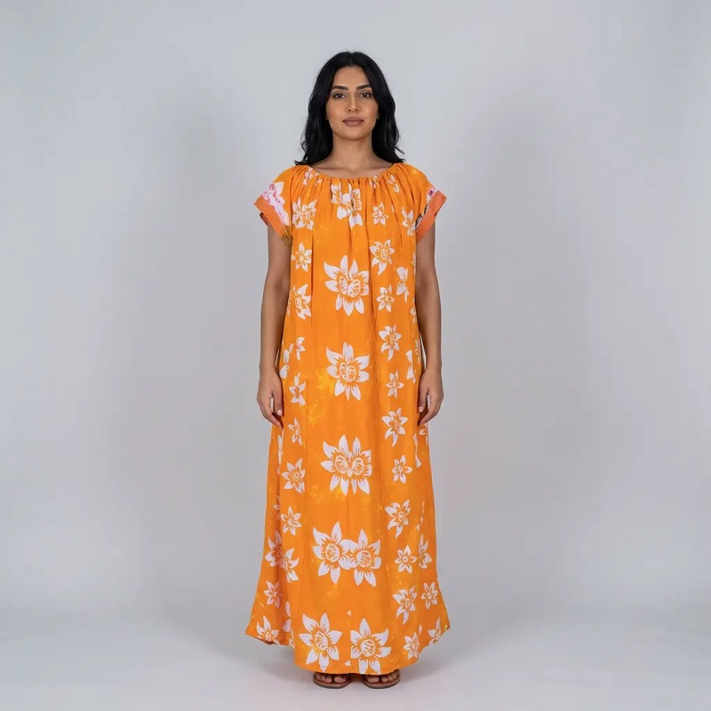 Muslim WearCotton Printed Maxi Gown Traditional Floral Orange Pure Cotton Nighty for Women, Arabian Outfit - Hanna Clothes HC-7740